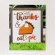 Gib Dankeschön und Eat Pie Erntedank Niedlichen Kuchen Schild im Gras mit Peitsche Sahne perfekt für Erntedank.