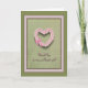 Danke geschickt mit einfachem Charme. Rosa und cremig weiße Herzen auf einem grünen Leinenrahmen........................................................................................................................................................................................