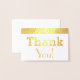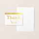 Vielen Dank in Gold (oder Silber) Folie in 2 Arten von Typografie. Der Dankeschön Gruß ist auf der Vorderseite der Karte, das Innere ist leer für Ihre besondere Danksagung. Die Rückseite der Karte ist mit unterschiedlichen Foil Streifen in unterschiedlicher Größe gestaltet.