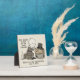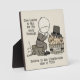 Der kleine Junge wird auf einem Baumstumpf in einer bettelvollen Position gesehen. Er ist wie ein Pilger gekleidet und hält an, um sich für seine vielen Segnungen zu bedanken. Vor ihm sitzend ist ein großes Fass mit dem Wort "Harvest", das von Kürbissen und Kürbissen überflutet ist und seinen Hut auf sie gelegt hat, während er betet.