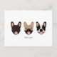 Illustration von drei französischen Bulldog Welpen in verschiedenen Farben.