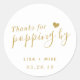 Maßgeschneiderte Hochzeitsgunst für runde Aufkleber/Etiketten mit "Danke fürs Poppen" in moderner Handkalligraphie mit goldenem Glitzer. Personalisieren Sie mit den Namen der Braut und des Bräutigams und dem Hochzeitstag. Tragen Sie die Aufkleber/Etiketten auf Kisten, Taschen oder Gläser auf einzigartige DIY Hochzeitspopcorn-Favoriten/Geschenke auf.