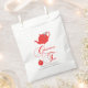 Freuen Sie sich auf diese elegante Tasche mit Weihnachten Tee Gastgeschenk, um sich für Ihre Teilnahme an Ihrem Feiertag zu bedanken. Vielen Dank, der Text kann mit der Vorlage angepasst werden. Roter Teekessel mit Silberbogen, der einen hübschen Weihnachtsball über anmutigen Schriftart ausgießt. Alle mit Vintager roter Spitze bedeckt. Ergänzt Ihre Weihnachtsdekorationen und -materialien mit passendem Design auf Produkten, die in meinem Laden auf der Zazzle-Seite erhältlich sind. ©AnuraDesignStudio Alle Rechte vorbehalten