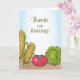 Vielen Dank an den Gärtner, der die Menge an Gemüse mit Ihnen geteilt hat. Hinter dem Gemüse Brokkoli, Tomaten und Salat steckt ein hellblauer Hintergrund. Diese Karte ist ideal, um jemandem zu danken, der seine Produkte aller Art geteilt hat!