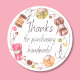 Mit unserem Aufkleber "Danke für den Kauf von Handmade!" möchten wir Ihnen für die Schönheit und den Einsatz von handgefertigten Kreationen danken. Mit einer charmanten Kollektion von handwerklichen Wesensstücken - Scheren, Garn, Häkelnadeln, Stricknadeln, Nadel und Faden und vielem mehr - erweckt dieses Design das Herz der Kreativität und des Handwerks. Dieser Aufkleber eignet sich perfekt für Hersteller, Kleinunternehmer oder alle, die sich für handgefertigte Gegenstände begeistern. Er ist ein gedankenvoller Weg, um Ihren Kunden zu danken und sie an die Liebe und Sorgfalt zu erinnern, die in jedem Stück steckt. Fügen Sie eine persönliche Touch zu jedem Paket oder Geschenk, und lass Ihren Kunden das Gefühl der Freude am Kauf von handgefertigten. Denn jeder Kauf ist eine Feier der Kunst!