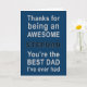 Eine einfache aber sinnvolle Vatertagskarte mit dem Text: "Danke, dass du ein phantastischer Stiefvater bist. Du bist der beste Papa, den ich je hatte."