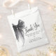 Teilen Sie Ihre Dankbarkeit mit diesen schicken und süßen 'Sie macht den Knoten' Bridal Shower Danke-Gastgeschenktaschen mit schwarzer Koketten-Schleife und stilvoller moderner Kalligrafie-Schrift.
