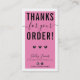 DANKE FÜR IHRE BESTELLUNG hübsch rosa schwarz einf Visitenkarte