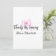 Danke fürs Kommen Name Textnachricht rosa Schleife