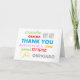" Danke" geschrieben in verschiedene Sprachen und in den verschiedenen Farben auf der Abdeckung und den Wörtern "danke" geschrieben auf das Innere in Schwarzes