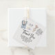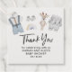 Ein einzigartiges Baby Duschfavorit-Tag mit Aquarellkleidung und Babyspielzeug oben, kombiniert mit "Danke" in handgeschriebener Kalligrafie, perfekt für eine Babydusche. Anpassen mit Textvorder- und -rückseite