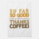 Gibt Ihnen Kaffee Motivation, Ausdauer, Zuversicht? Ist Kaffee der Funken, der dich durch den Tag Power? Können Sie Ihren Erfolg auf Ihr Lieblingsgetränk Coffein zurückführen? Zeigen Sie etwas Liebe zu Ihrem Getränk der Wahl: "So weit so gut. Danke, Kaffee!"