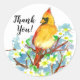 Ein Dankeschön-Aufkleber mit einem weiblichen Kardinal-Vogel in einem blühenden Dogwood illustriert mit Tinte und Aquarell. Inspiriert von der Staat Vogel und Staat Blume von Virginia. Sie können Text hinzufügen, um Ihren Bedürfnissen zu entsprechen.