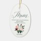 Schicken Sie Ihre Liebe zu Ihrer Mutter an Ihrem Hochzeitstag mit unserem wunderschönen und personalisierten Hochzeitssakeensornament. Das Design zeichnet sich durch die handbemalten, wasserfarbenen, tiefgrünen High-Heel-Schuhe aus, die mit unseren schönen Aquarellfarben Rosa und Bordeaux-Blumen geschmückt sind. Elegantes Design mit "Mama" in Skriptkalligrafie. "Danke für stehend an meiner Seite heute & immer". Personalisieren Sie mit Ihrem Hochzeitstag. Auf der Rückseite des Ornaments befindet sich ein Foto-Layout, in dem ein spezielles Mutter-Tochter-Foto gezeigt wird. Ein wunderschönes und nachdenkliches Ornament für Mama an deinem Hochzeitstag, das sie lieben wird.