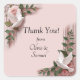 Danke! mit Namen, Täubchen und weißen Rosen Quadratischer Aufkleber