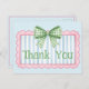 Diese niedliche Dankes-Postkarte zeigt einen rosa Rahmen mit blau-weißen Streifen und wird von einer schicken grün-weißen Gingham-Karo-Schleife gekrönt. Personalisieren Sie mit Ihrer Wahl des speziellen Textes.