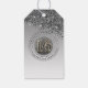 Vielen Dank, dass Sie ein Geschenk-Tag mit Black Glitzer fallen auf einem schicken silbernen, grauen Hintergrund. Einzigartige schwarze und goldene Zahl 16 in einem silbernen Rahmen "dots" Muster.