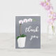 Elegante und stilvolle Dankeschön-Karte mit einer Illustration einer verzierten Orchidee in einer weißen Vase mit 3 weißen Blume und Orchideenbuden. Eine elegante Danksagung in einem großen weißen Script-Schriftart ist rechts neben der Blumenillustrierung. Die Karte ist innen leer für Großhandel / Bulk Bestellungen für den Einzelhandel und großartig für den allgemeinen persönlichen Gebrauch.