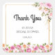 "Wir danken Ihnen für Ihre Dankbarkeit, Petals und Prosecco Floral Brautparty Square Sticker. Diese Aufkleber mit charmanten Blüten verzieren eine Touch blumengeschmückter Eleganz und versetzen Ihre Herzenslust in eine bleibende Erinnerung an ein schönes Fest."