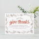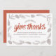 Diese moderne Einladung besticht durch eine holzige botanische Grenze und einen wunderschönen Script-Schriftart, der uns daran erinnert zu danken. Die perfekte Einladung für ein Erntedank-Abendessen für Freunde und Familie.