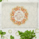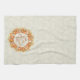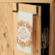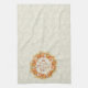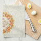 Küchentücher, die lautet: "Give Danke with a Grateful Heart" in einem handgeschriebenen Schriftart, umgeben von einem Herbst-verlass und Kürbis-Kürbis. Handtuchhintergrund hat ein subtiles Blatt- und Akornmuster.