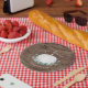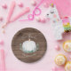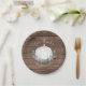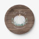 Die Teller aus Erntedank sind mit einem weißen Kürbis in Aquarellfarbe und einem Eukalyptus in sanften Grüntönen auf einem Holzboden dekoriert. Sie sagen "Give Danke" in stilvoller Schrift-Typografie. Sie können sie mit Ihrem Namen anpassen. Original Wasserfarbe © Michele Davies.