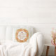 Kissen, das lautet: "Gib Dank mit einem dankbaren Herz" in einem handgeschriebenen Schriftart, umgeben von Kürbis und Blattkranz. Der Hintergrund hat einen subtilen Prägung-Look.