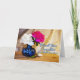 Rose in einer Vase sagen danke an eine Tochter. Originelles Kunstwerk, das zwei Rose in einer blauen Vase zeigt, mit Rosenbuden auf dem Tisch.