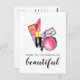 "Danke, dass du mich schön gemacht hast" mit handgemalten Aquarellbildern bedankt dich auf der Postcard. Entworfen und illustriert mit Liebe von Kristine Lee Designs.