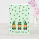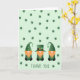 Dies ist eine lustige Abbildung von Gartenzwergen, die für den St. Patrick's Day gestaltet wurden. Sie sind mit vierblättrigen Kleeblatten und einem hellen orangefarbenen Bart ausgestattet.