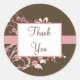 Vielen Dank an die Aufkleber mit einem schokoladenbraunen und rosa Blumengestein. Holen Sie sich das passende Porto, um das Aussehen zu vervollständigen. Auch erhältlich mit Monogrammen, oder die Namen der Braut & Bräutigam.