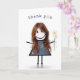 Niedliches Strichmännchen mit Haar, Sneakers, blaues Denim-Kleid, Perlenhalskette und zartes Bouquet für Dankeschön. Die Farbe des weißen Hintergrunds kann geändert werden. Alle Texte können bearbeitet werden.