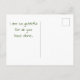 "Danke" mit einem Hauch von den Tropen mit dieser preiswerten Postkarte. Diese Wertungskarte ist der perfekte Weg, um jemanden zu überraschen, der etwas Besonderes mit einem herzlichen Ausdruck Ihrer Wertschätzung. Diese Karte zeigt ein Foto, das ein leuchtend grünes Palmenblatt mit den tiefschattigen Grooves dieser tropischen Pflanze einfängt. "Vielen Dank" ist in großen weißen Schriftart zentriert und kann schnell angepasst werden, wenn Sie wollen. Die Rückseite dieser Postkarte kann schnell angepasst werden, um genau zu sagen, was Sie wünschen.