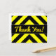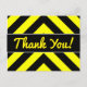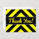Dieses Design der Postkarte weist ein Zickzack-schwarz-gelbes Muster auf. Es enthält auch die Meldung "Danke!" auf der Vorderseite in gelber skriptähnlicher Schrift, zusammen mit einer personalisierten Danksagung auf der Rückseite.