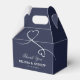 NewParkLane - Elegante personalisierte Gastgeschenk Hochzeit Box, mit zwei weißen Wirblen Herzen, vor einem marineblauen Hintergrund. Einfache Anpassung in Zazzle mit eigenem Text für ein personalisiertes Design. Alle Textstile, Farben, Größen können an Ihre Bedürfnisse angepasst werden. Auch verfügbar mit Imitaten goldene Herzen und Text: Karo aus dieser Gold Brush Script Collection für passende Artikel. Haben Sie spezielle persönliche Designwünsche? Nehmen Sie Kontakt mit mir auf.