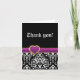 Schwarz-weißer Damast mit lila Band- u. Herzhochzeit danken Ihnen die Anmerkungskarte und kennzeichnen einen eleganten, stilvollen und romantischen Entwurf von einem Schwarzweiss (B&W) Blumendamastmuster, ein lila Band, ein Schmuck wie Herz mit Gold/goldener Kontur und eine Vintage Art Schriftart. Klassiker dennoch modernes gleichzeitig. Groß während eines noblen Winters oder aller Jahreszeiten, die, nicht gerade für Valentinstag wedding sind. Merken Sie, dass das Herz eine Illustration ist.