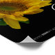Schönes Herbbelag mit Sonnenblumen und Schmetterling umgeben einen Teich, der Farben reflektiert.
