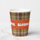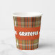 Dankbar Grateful gesegnet Papier Party Tassen in hübsch, rustikal, braun, orange, gold, grau kariert. Das ist ein originelles kariertes Design von Amy Lyn, Green Carbon 2112.