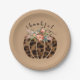 Mit diesen trendigen leoparden Kürbispapier-Tellern können Sie Ihre Erntedank-Feierlichkeiten noch intensiver gestalten. Schwarzer, brauner und bräunlicher, schicker Kürbis mit Herbstblumenarrangements, Blume und Federn. —>>> Sie können auch das Wort "dankbar" zu jedem benutzerdefinierten Text ändern.