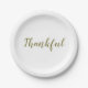Dankbar sage grün-weiße Schrift Kalligraphie niedlich Erntedank Party Papier Teller. Elegantes, modernes Design. Toll für Erntedank