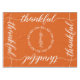 Dress deinen Erntedank-Tisch mit diesem "dankbaren" Design mit einem modernen Drehbuch. Wiederholter "dankbarer" Text und eine Fallkranz-Illustration in der Mitte. Freuen Sie sich auf einen Thementisch. Die moderne, gebrannte Orange Farbe kann mit dem Werkzeug für die weitere Bearbeitung auf die gewünschte Farbe geändert werden.