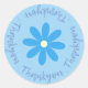 Ein Dankeschön Aufkleber mit blauer Blume, um Geschenke, Umschläge oder handgemachte Geschenke zu verwenden.
