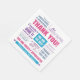 Leider ist beim Bestellvorgang nicht die Größe angegeben, zumindest habe ich es nicht gesehen. Der Name "Duschen"-Servietten ist etwas seltsam :-) Aber man kann aus verschiedenen Designs auswählen und es sieht ganz nett aus. Ich würde mir aber noch viel mehr verschiedene Farben und Muster wünschen! Insgesamt eine nette Idee für ein personalisiertes Accessoire zu allen möglichen Feiern. Der Druck ist OK, er ist nur ganz leicht unscharf.