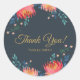 Dankeschön! Dunkelblau, elegant, Whimsikale Blume Runder Aufkleber