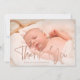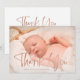 Diese elegante und stilvolle Geburtsankündigung zeichnet sich durch das Foto des Neugeborenen aus, mit einem Ort für eine persönliche Nachricht und die Geburtsinformation des Babys auf der Rückseite. Die Worte "danke" erscheinen in einem modernen, Imitate Rose Gold-Look.