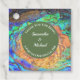 Ein helles Neonmosaik bildet den Hintergrund für dieses Begrüßungstag für Hochzeitsgäste. Die kleinen Kacheln mit lebhaften Farben in einer Krawatte-Färbung bilden den Hintergrund für Ihre Wertschätzung. Diese preiswerte Hochzeitsgast-Wertschätzung kann leicht mit den Namen der Braut und des Bräutigams und einer besonderen Botschaft personalisiert werden.