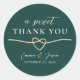 Fügen Sie Ihren Gastgeschenke Hochzeiten eine persönliche, herzliche Touch mit diesem eleganten smaragdgrünen Rundaufkleber mit goldenem Seilkern und modernem Drehbuch hinzu, das ein Dankeschön ausliest. Ein wunderschönes Spiel für Ihre smaragdgrüne Hochzeitssuite, ideal zum Versiegeln von Taschen, Kisten oder Gläsern aus Leckerei. Für Fragen oder eine Suite-Koordination wenden Sie sich bitte an bpkolman@gmail.com.