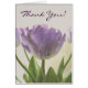 Vielen Dank Karte mit lila Tulpe Blume. Ideal, um sich bei Hochzeitsfeiern bei den Brautmeistern, Gästen, Freunden und der Familie zu bedanken. Elegante Typografie mit klassischem Blumenbild.