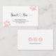 Vielen Dank Karte mit Paw Print. Einfache, kleine Visitenkarte mit handgeschriebenem Text, der "danke" mit einem Herz in der Mitte sagt. Sie können Ihr Logo und eine einfache Nachricht auf der Rückseite zusammen mit Ihren Social Media-Informationen hinzufügen.