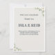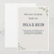 Diese elegante florale Hochzeits-Dankeskarte verfügt über ein sauberes, minimalistisches Design mit sanften Grüntönen, perfekt, um sich nach Ihrem besonderen Tag bedanken zu können.